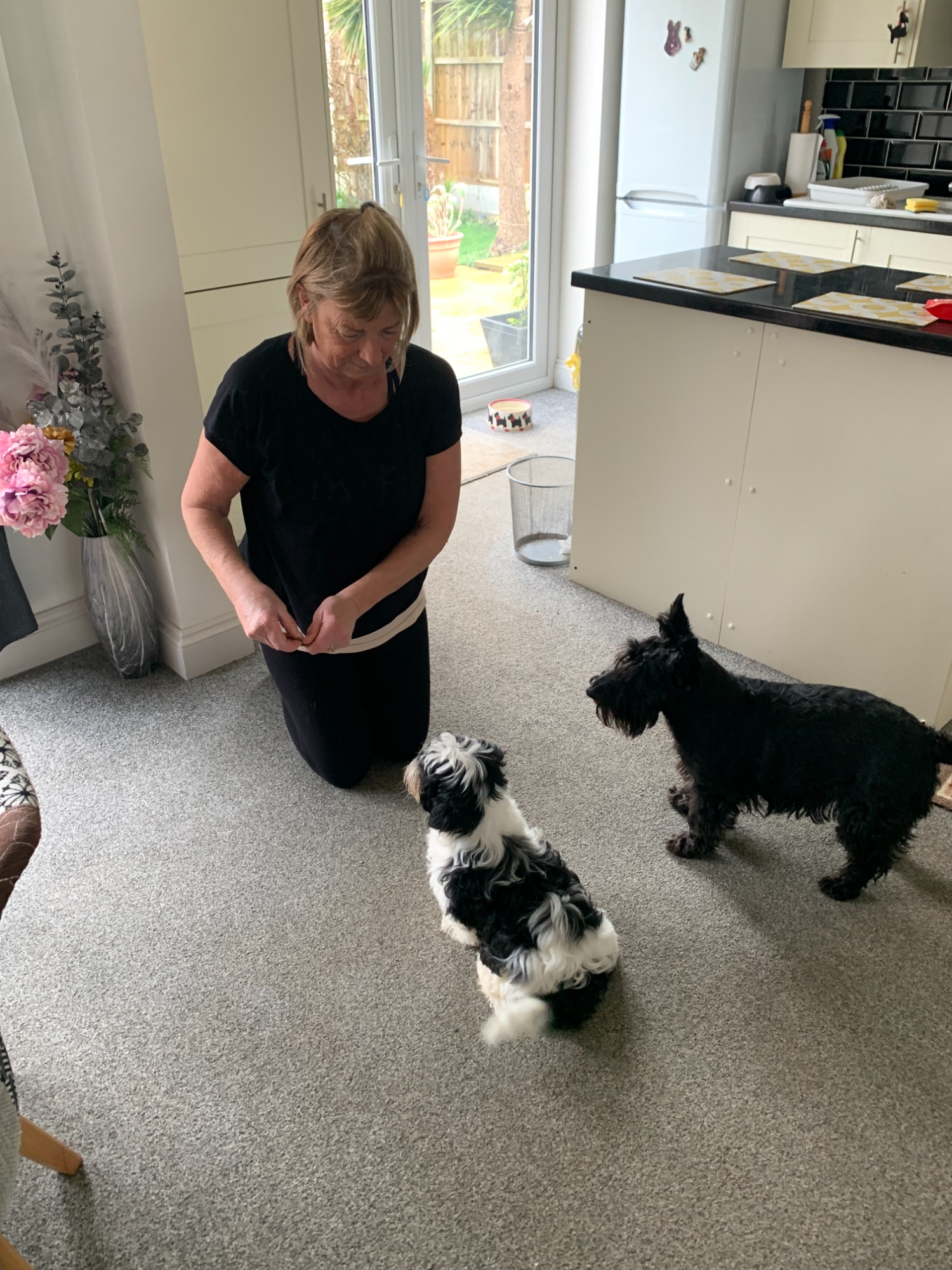 Practicing food manners with 2 dogs