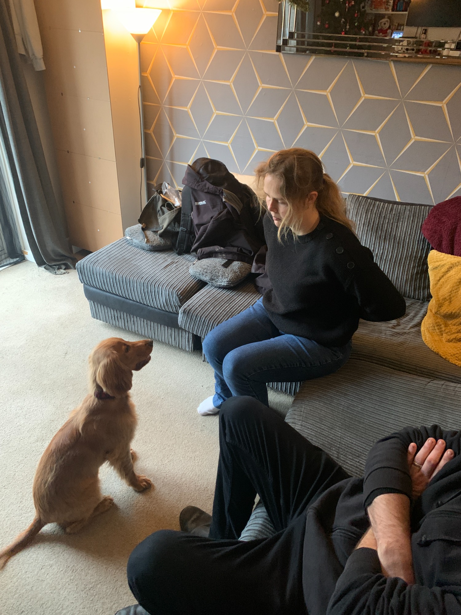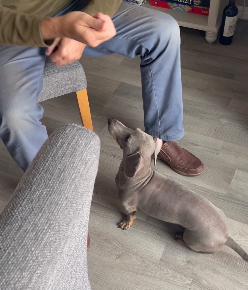 Coaching eye contact at home with Woody
