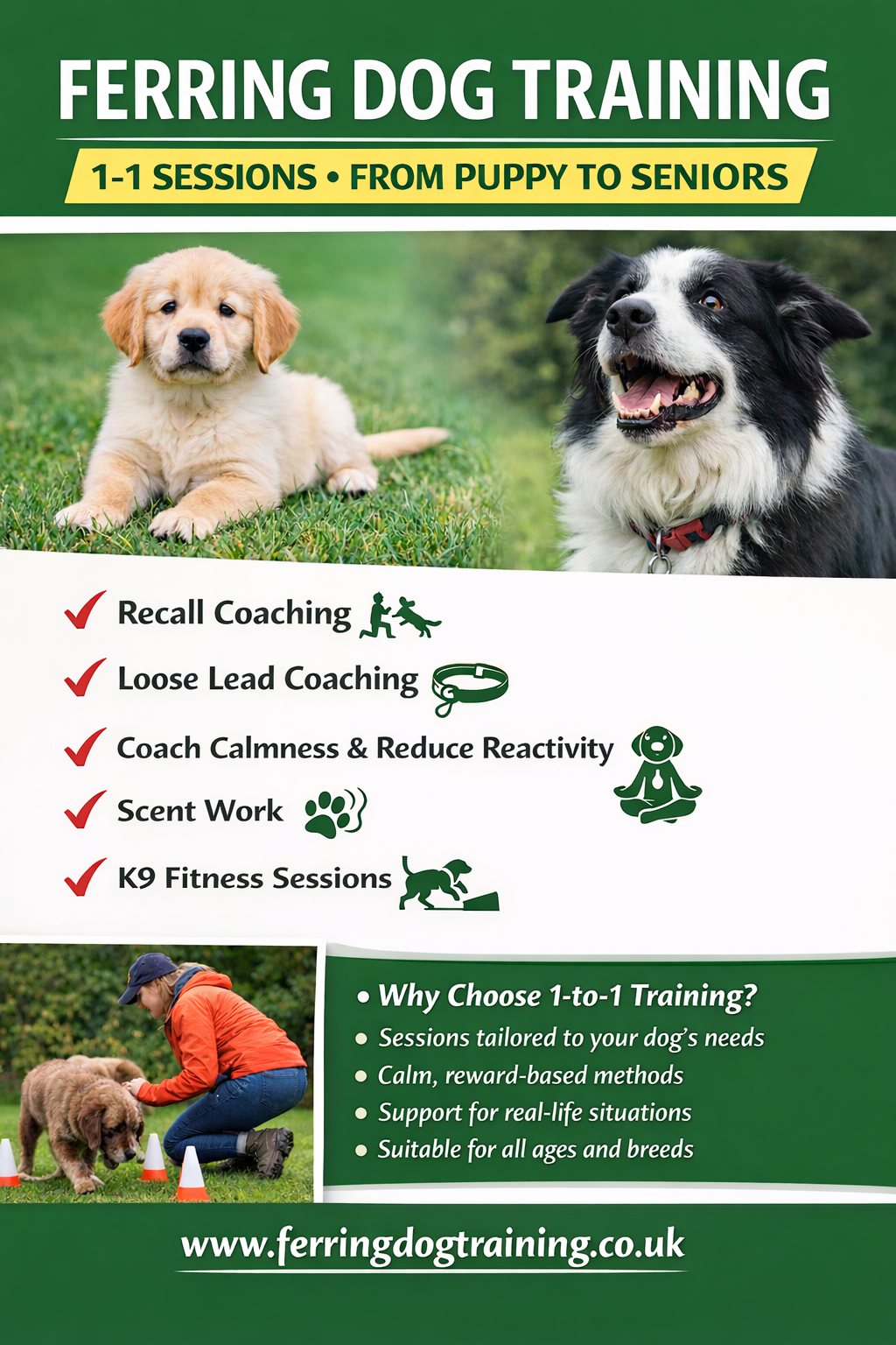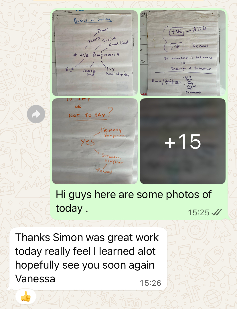 I love sharing the knowledge I have learnt over the many years of coaching and working dogs professionally.