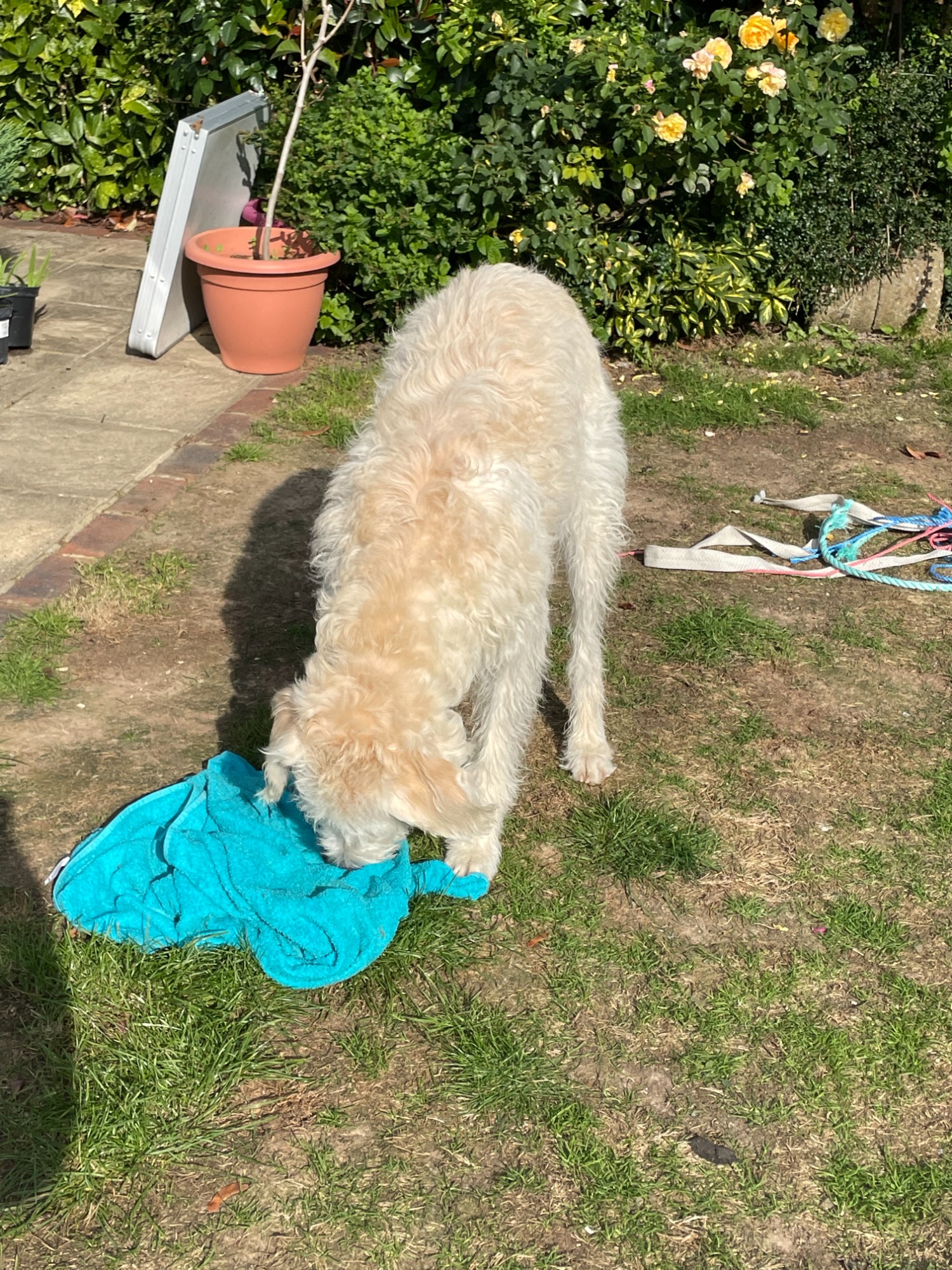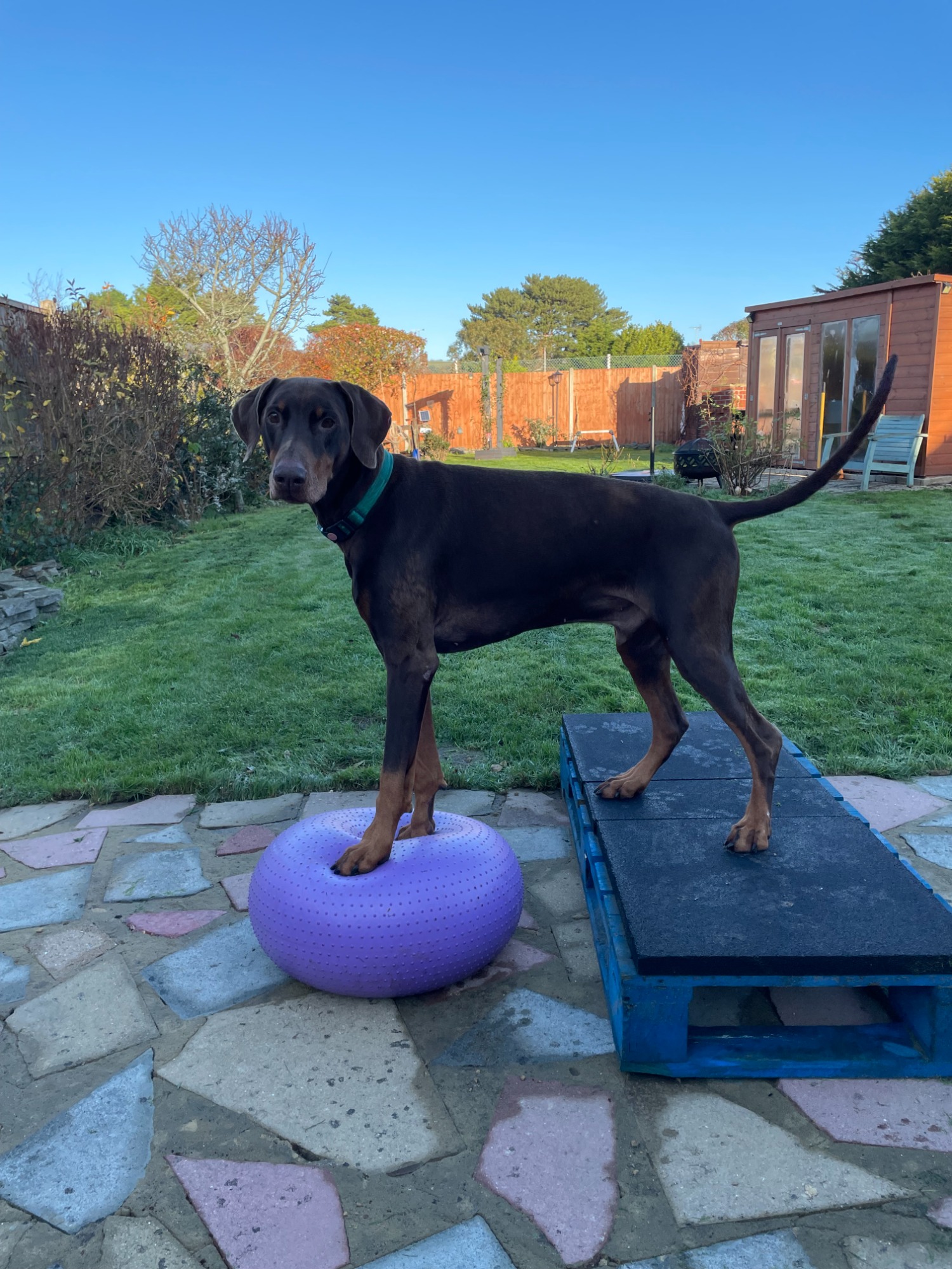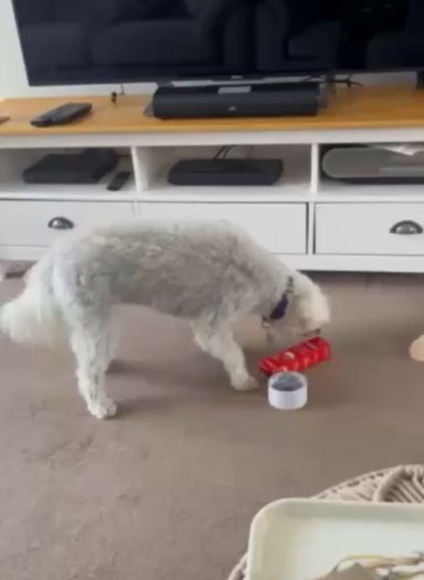 Freework allows a dog to work an enrichment trail to help them stay occupied in an otherwise stressful environment albeit their own garden