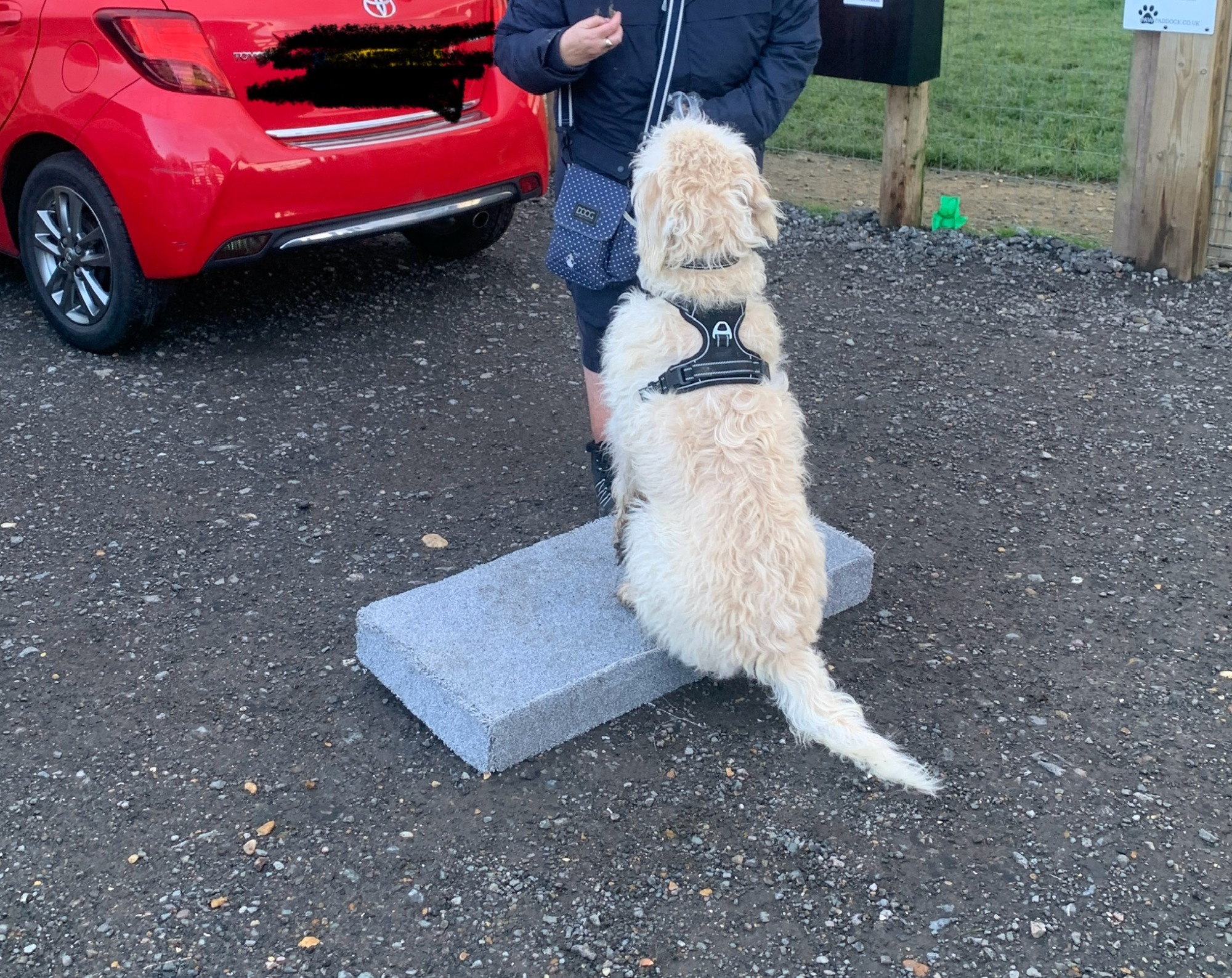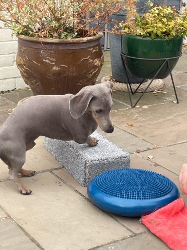 Pippa... Paws Up a sensory exercise. Allows a dog to concentrate on something other than the environment.
